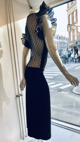 Kort kjole med flæseærmer og tyl/mol ryg, sort