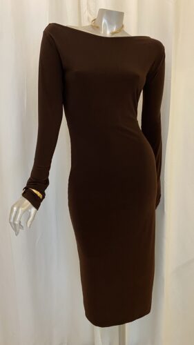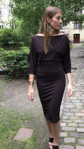 Kort kjole med lange ærmer òg bådudskæring, mørkebrun