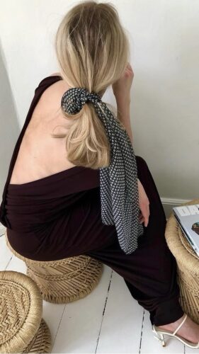 Lang kjole med dybt kryds i ryggen, mørkebrun