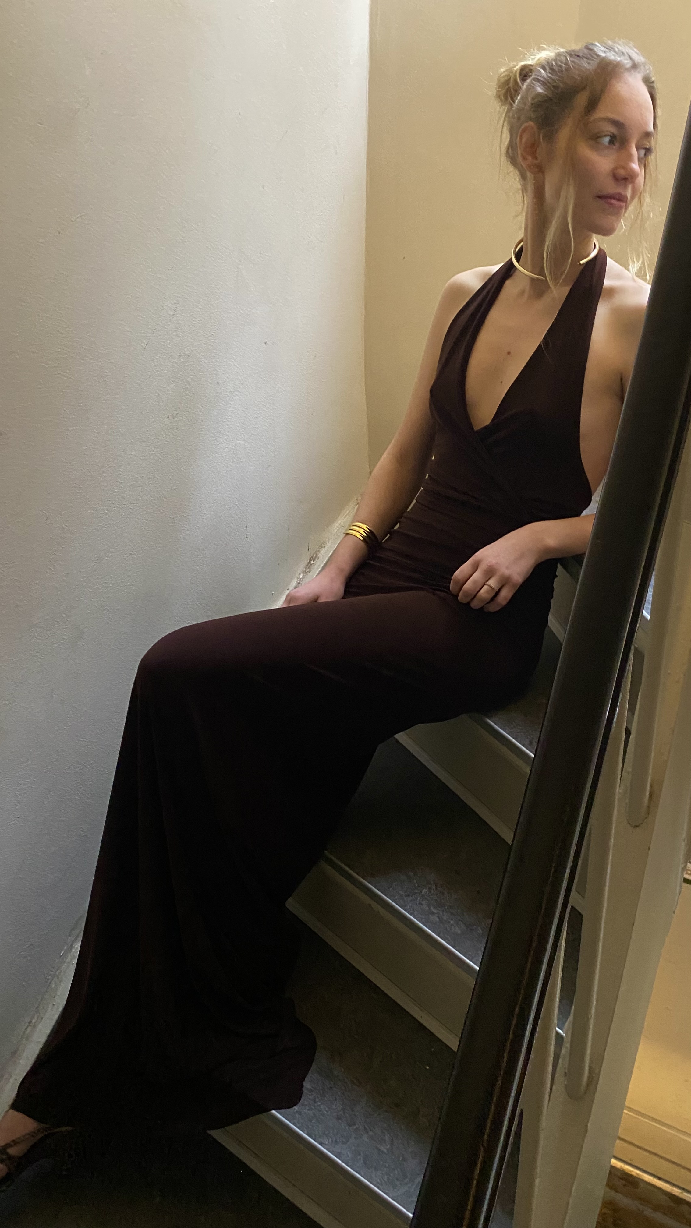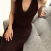 Lang halterneck kjole, mørkebrun