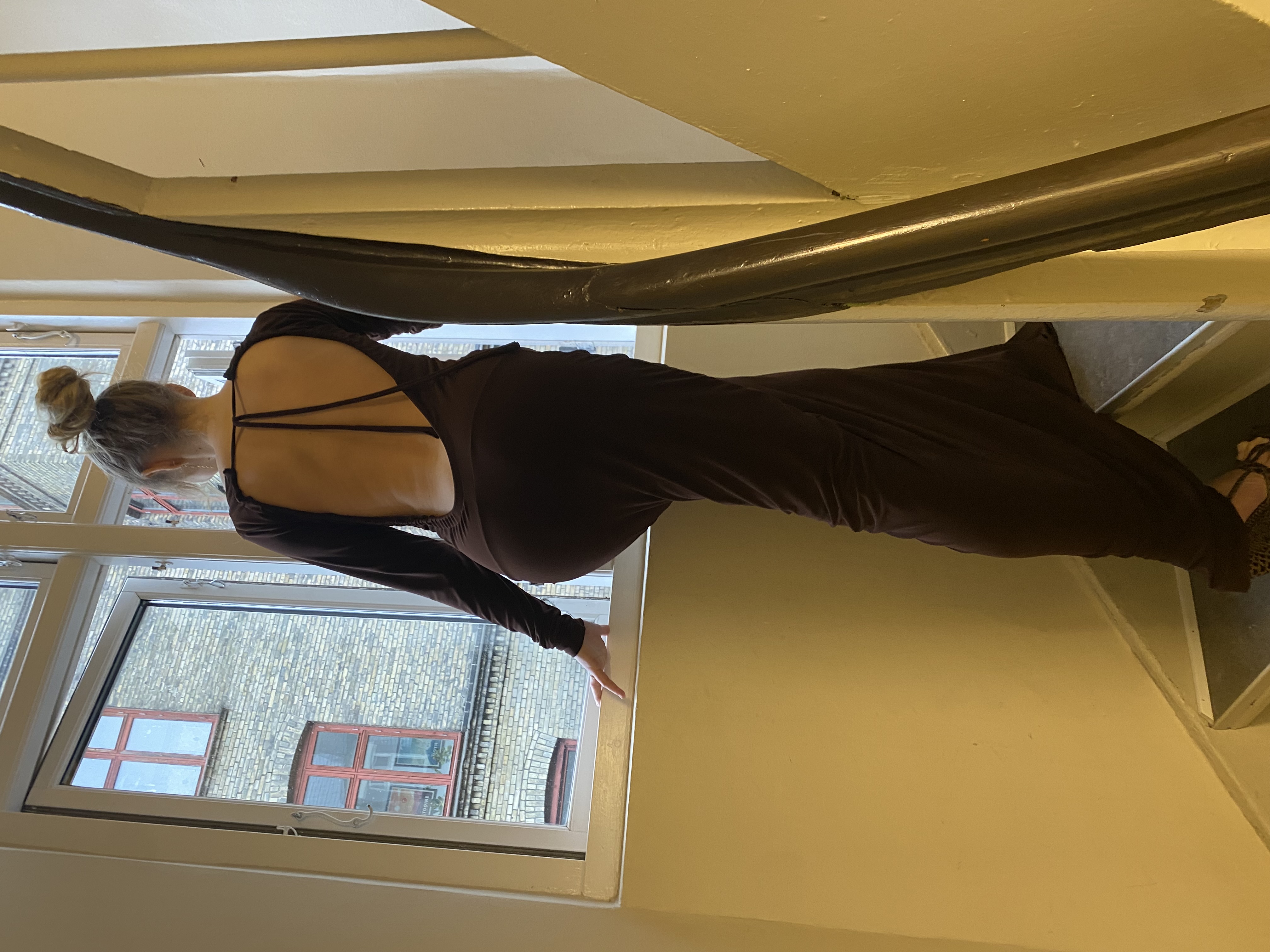Lang kjole med lange ærmer og løbegang i ryggen, mørkebrun